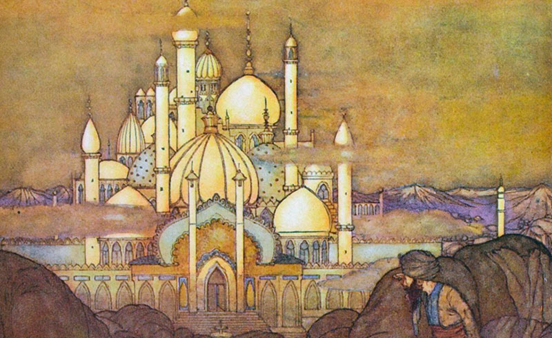 Siguiendo las huellas del avance conquistador, el siguiente hito sería la toma por parte de Musa ibn Nusayr, gobernador del Magreb y uno de los protagonistas de la conquista de la Península Ibérica, de la mítica Ciudad de Bronce en el norte de África. El relato tiene varias versiones, tanto de fuentes geográficas e históricas como literarias, y es muy conocida por encontrarse dentro de Las 1001 noches y Las 101 noches. En la versión más parecida a las ya mencionadas, en la traducción de Blasco Ibáñez, que hizo de la francesa de Mardrus, Musa