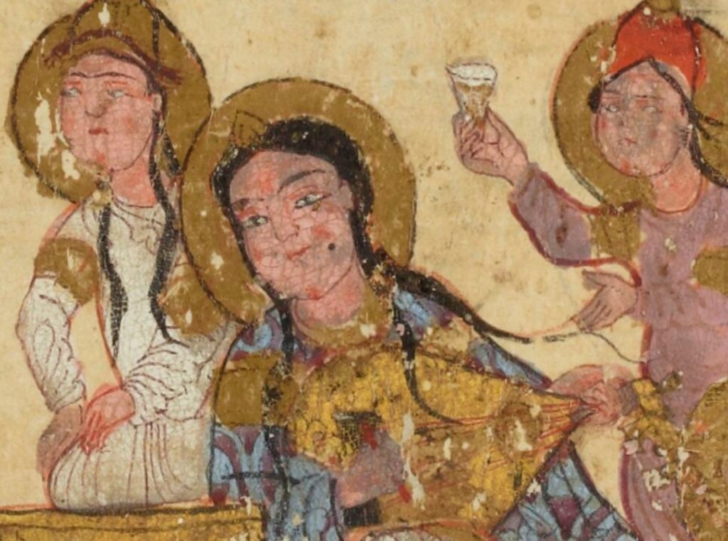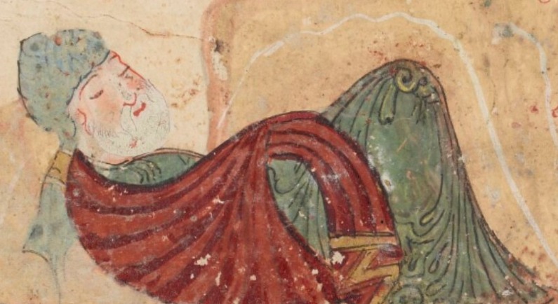«La cosa es que un día me presenté en casa de Abulsari […] y que me lo encontré pensativo y preocupado, y le pregunté qué le pasaba. Calló un rato y dijo: “Me sucede algo extraordinario, nunca oído.” Repliqué: “¿De qué se trata?” Dijo: “Esta noche pasada, he visto en sueños a una esclava y, al despertar, sentí que mi corazón había ido tras ella: mi mente ya no piensa en otra cosa. La verdad, por su amor me encuentro en una situación más que desesperada.