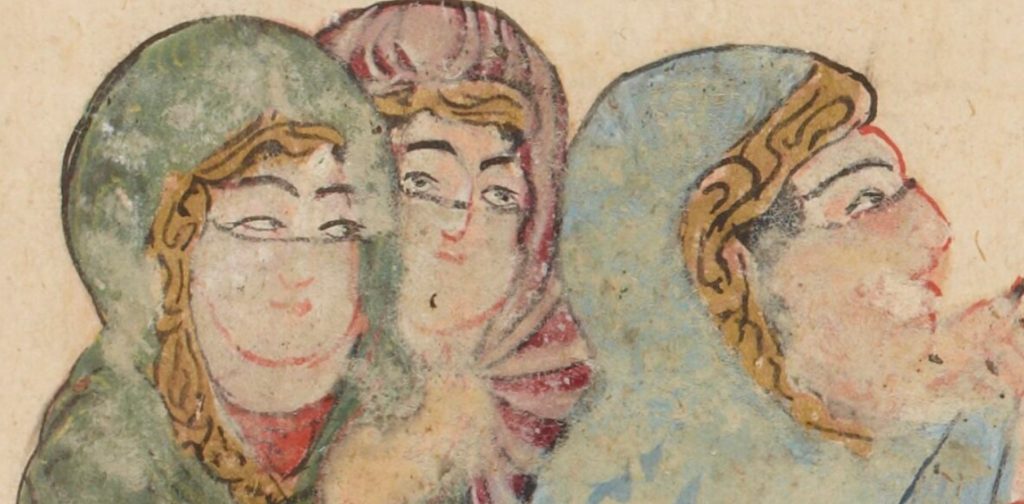 Además, existe toda una tradición literaria que describe el amor surgido al contemplar un retrato.[10] Es de este modo que en las Mil y una noches varios héroes se enamoran de una imagen pintada o bordada y emprenden la búsqueda del modelo original. Nadie se atreve a culparlos, pues nadie cuestiona la existencia del modelo. Desde ese punto de vista, la contemplación de la imagen anticipa el hallazgo, es un preludio al verdadero encuentro con el modelo original.[11]